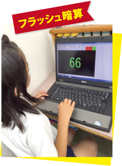 そろばんを使わず、独自の暗算カードを使った暗算指導をしています。カードに描かれたそろばんの絵から、数字とそろばん玉の関係を理解することで、暗算力を身につけます。