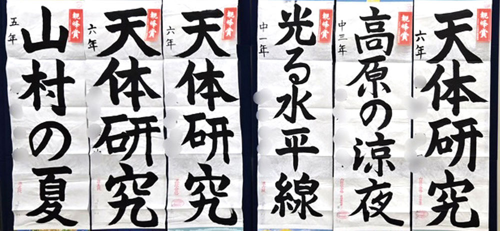 ACE生が所属する公益財団法人日本習字教育財団が年2回(7月のたなばた・1月のかきぞめ競書大会)開催し、11000支部、30万を超える生徒が参加する競書会です。日本習字の創設者である原田観峰先生の名前から由来します。全部で5つの賞があり、上から順に「観峰賞」「金賞」「銀賞」「銅賞」「努力賞」となり、「観峰賞」は最優秀賞となります。